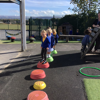 The children in pre-school are settling in so well and have been very busy making new friends. This week, they have been exploring in the garden- developing their gross motor skills and creating yummy concoctions in the mud kitchen. They have enjoyed singing, creating our class rainbow and taking part in 'rainbow breathing.'