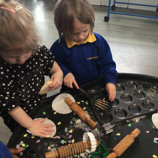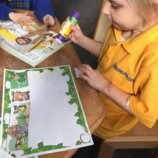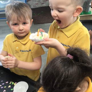 It's been a busy week in pre-school this week! We have been sequencing the story of 'Jack and the Beanstalk.' The children remembered the story so well! We have been vegetable printing and making 'birthday' cupcakes. We have also enjoyed playing outside in the spring sunshine!