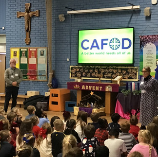 We had a great time at the KS2 Christmas Disco. We learnt a lot about the work of CAFOD, from Jane and Leo, and how the money we raised from the Santa Dash is helping people in need across the world. It was our turn to lead Picture News; the Picture Pioneers were amazing sharing how communities help vulnerable people keep warm in Winter.